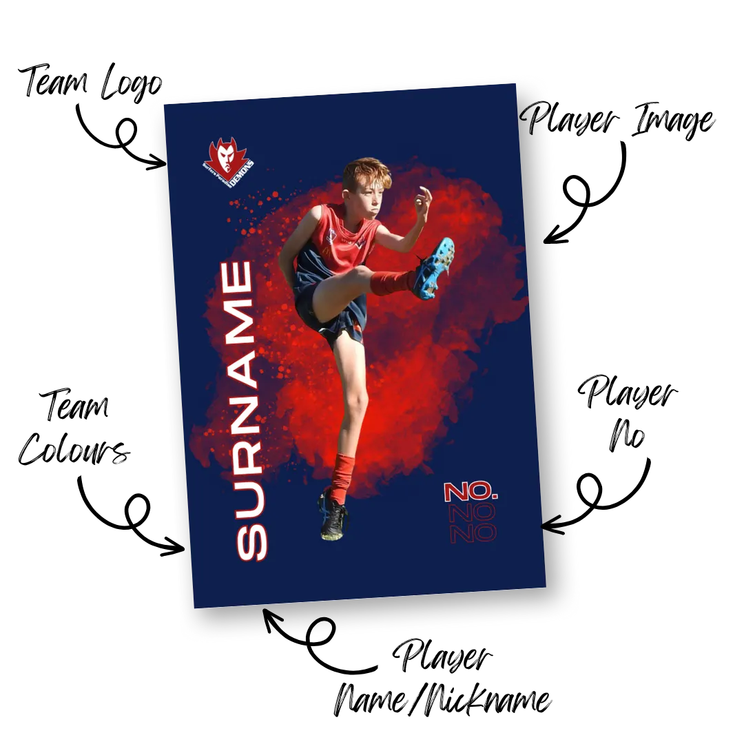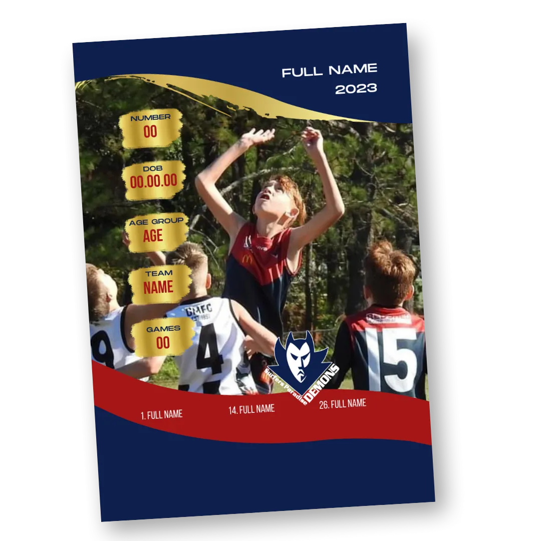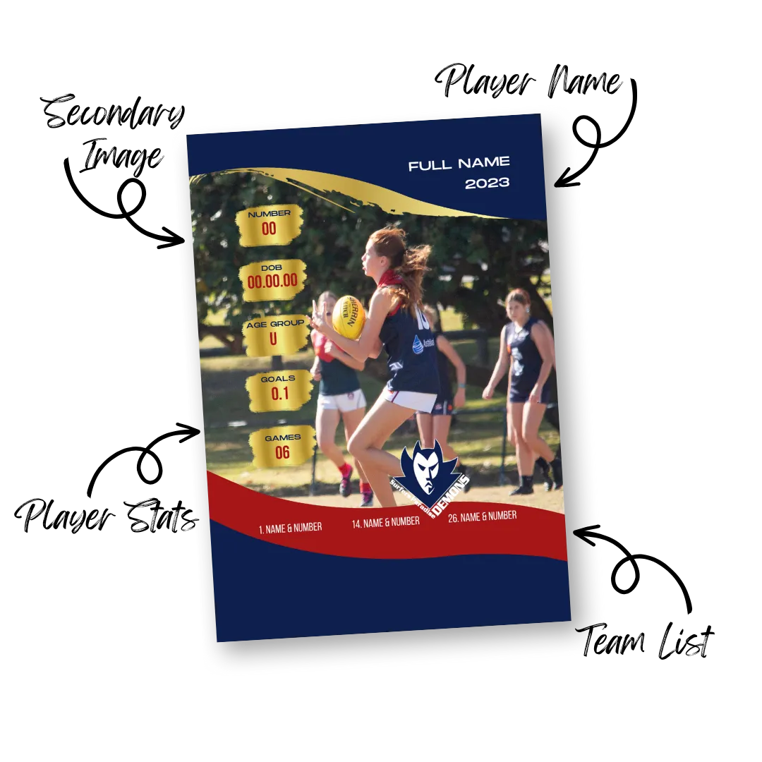 Get a design for your club. You have permission to use this design and add your players to it. You must be a part of the Club Committee or Board to purchase a Club Template. You must have permission from your club to use their logo.